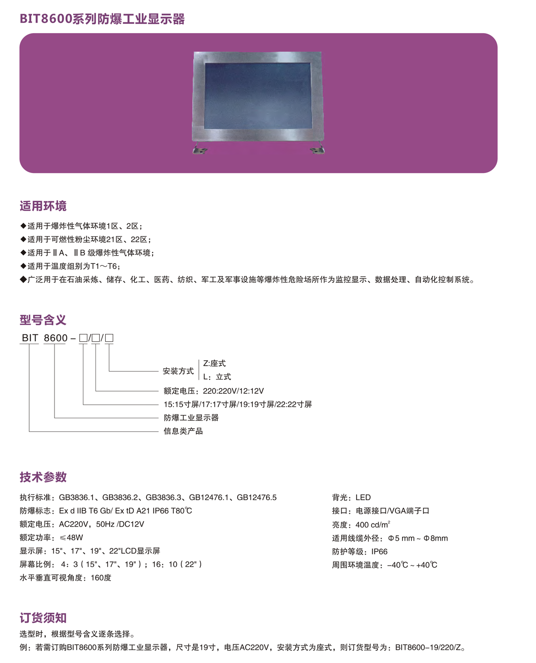 BIT8600系列防爆工业显示器